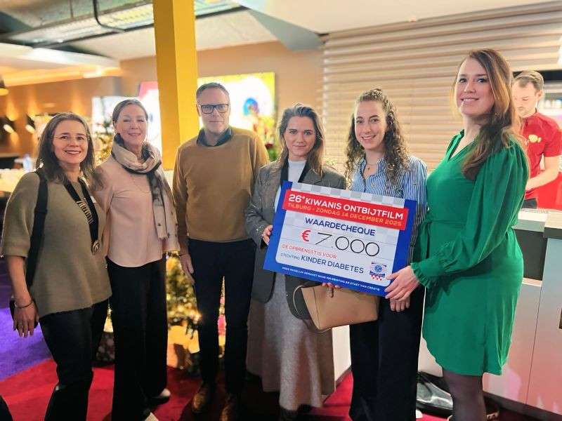 Na de film konden we als Kiwanis Hart van Brabant met trots de Stichting Kinderdiabetes Fonds een cheque ter waarde van € 7000,00 overhandigen. De opbrengst wordt gebruikt voor de 2 jaarlijkse familiedag voor kinderen met diabetes komend jaar in september.